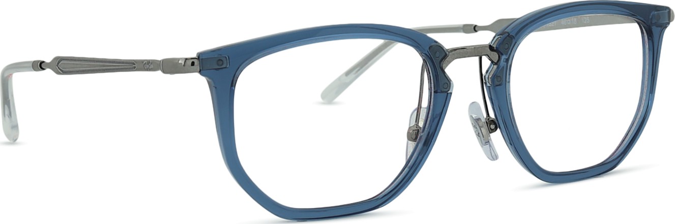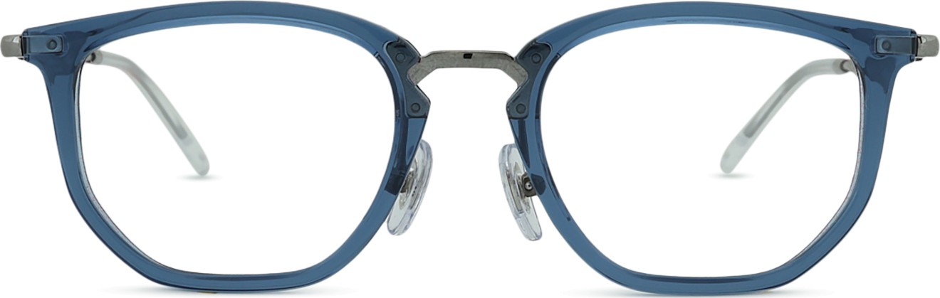 A cor azul da armação combina perfeitamente com um tom de pele claro e um cabelo castanho claro, preto ou loiro claro.
