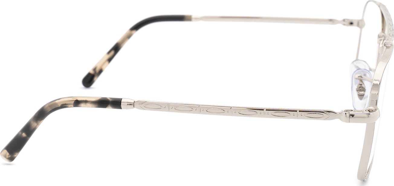 - A cor prateada da armação combina perfeitamente com um tom de pele claro e um cabelo vermelho, cinzento, branco ou loiro escuro.