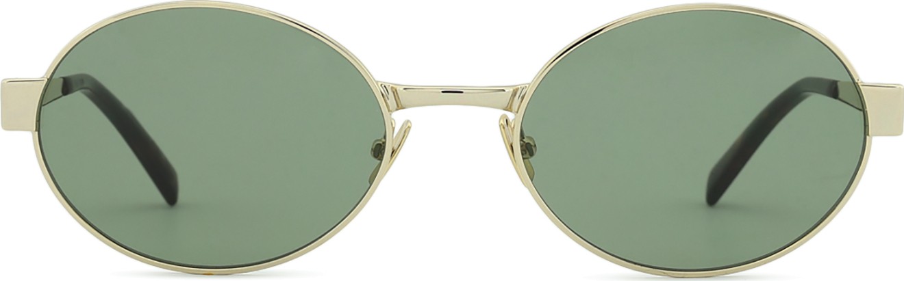 - A cor dourada da armação combina perfeitamente com um tom de pele quente e um cabelo castanho escuro.