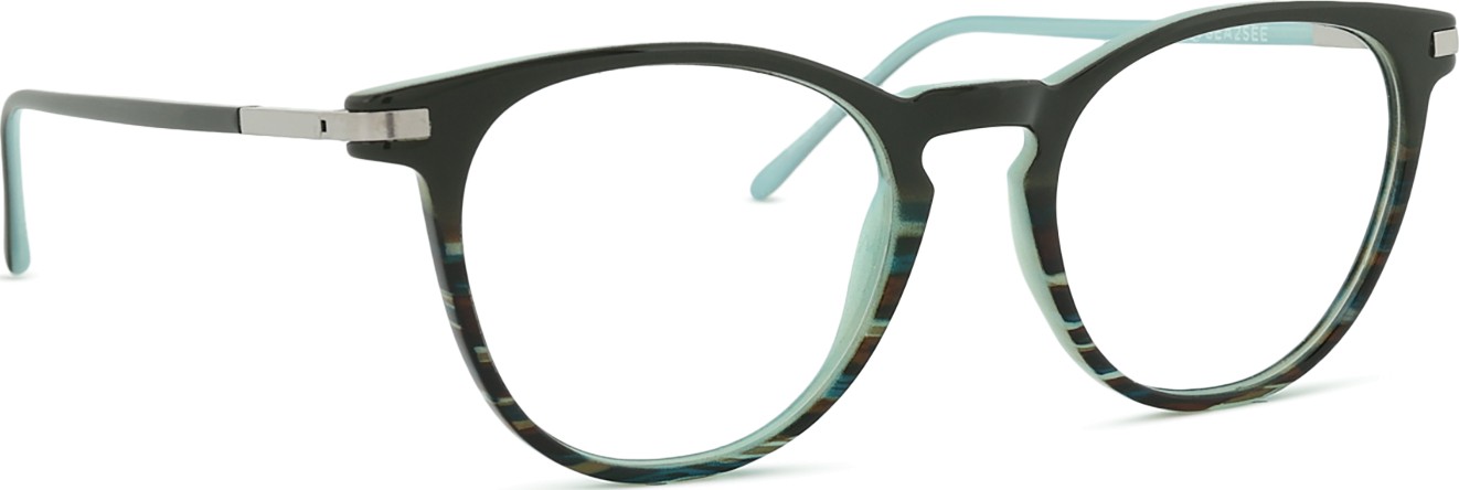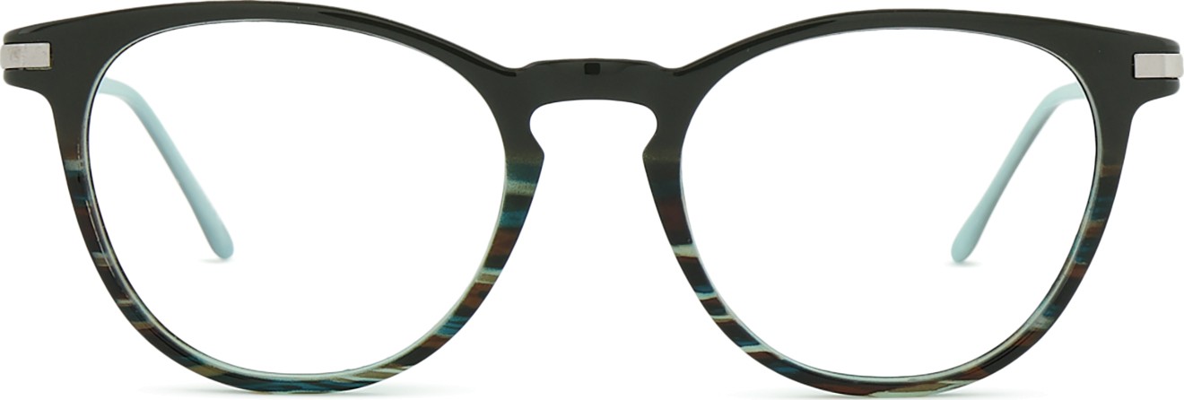 - A cor verde da armação combina perfeitamente com um tom de pele claro e um cabelo castanho escuro, preto ou ruivo.