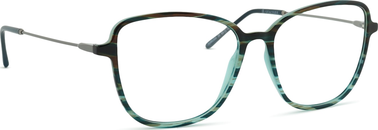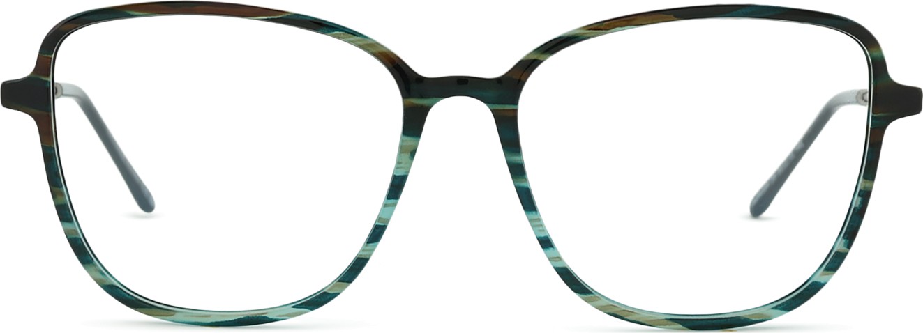 - A cor verde da armação combina perfeitamente com um tom de pele claro e um cabelo castanho escuro, preto ou ruivo.