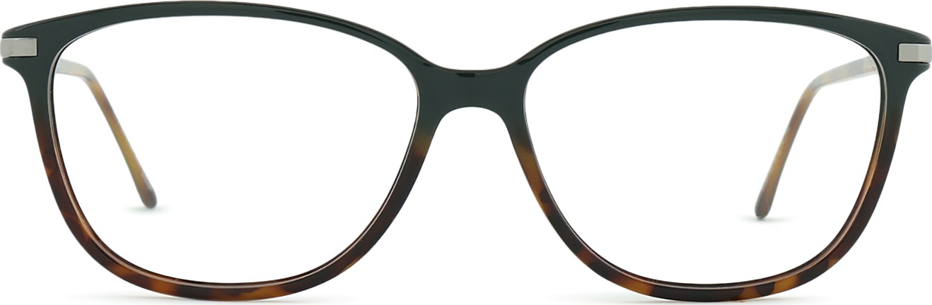 - A cor verde da armação combina perfeitamente com um tom de pele claro e um cabelo castanho escuro, preto ou ruivo.
