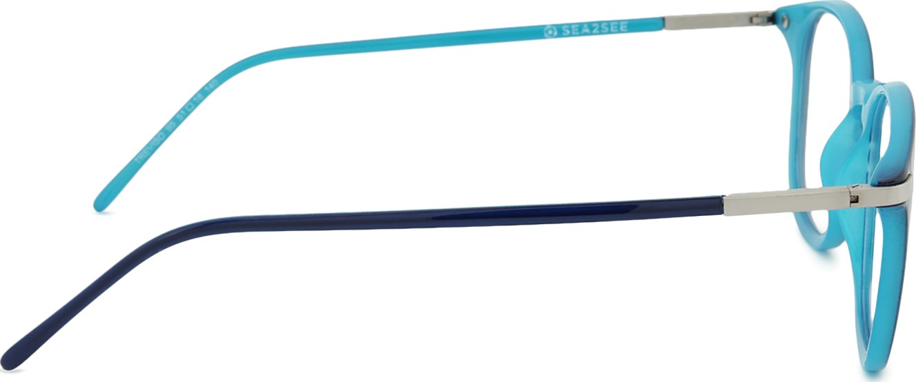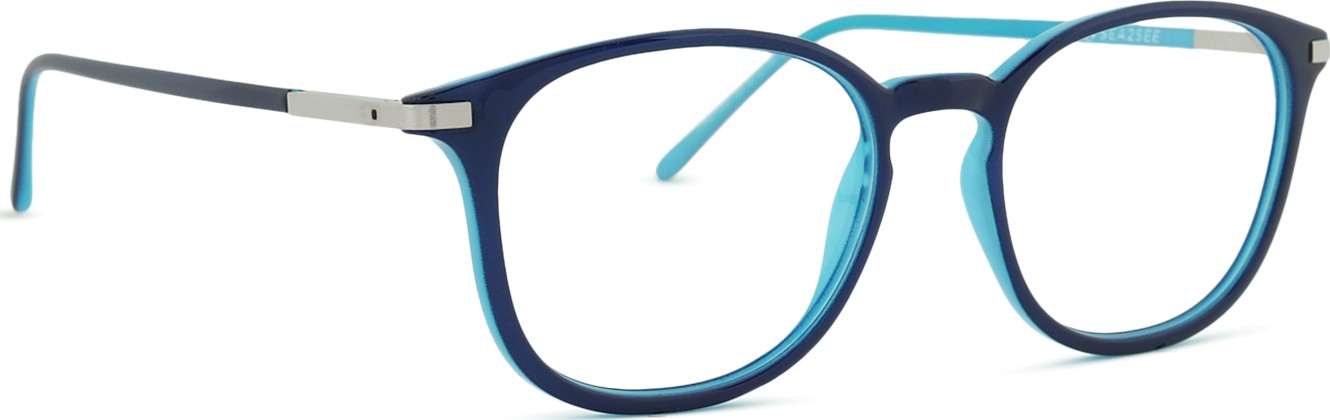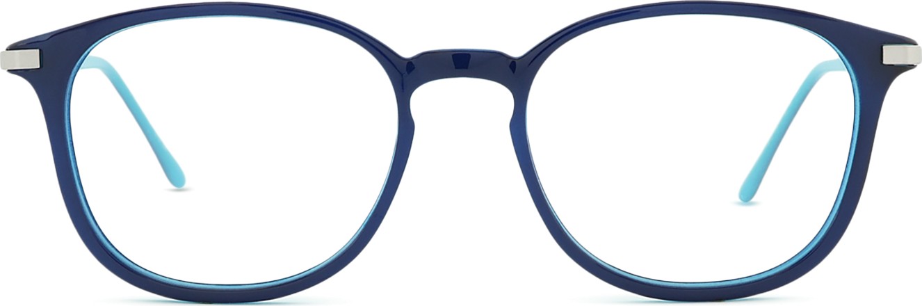 - A cor azul da armação combina perfeitamente com um tom de pele claro e um cabelo castanho claro, preto ou loiro claro.