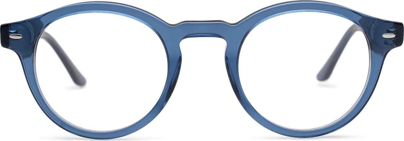- A cor azul da armação combina perfeitamente com um tom de pele claro e um cabelo castanho claro, preto ou loiro claro.