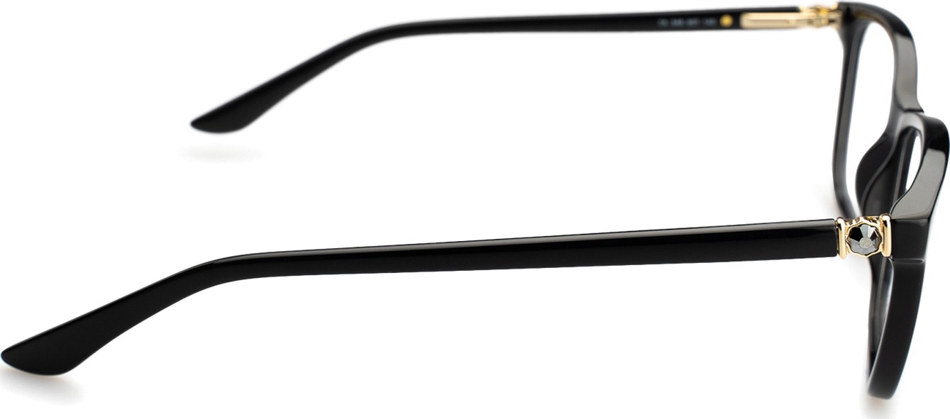 - A cor preta da armação combina perfeitamente com um tom de pele claro e um cabelo loiro claro, castanho claro ou preto.