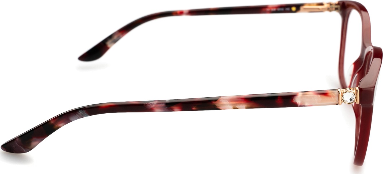 - A cor vermelha da armação combina perfeitamente com os tons escuros de pele e o cabelo preto, castanho escuro, branco ou cinzento.