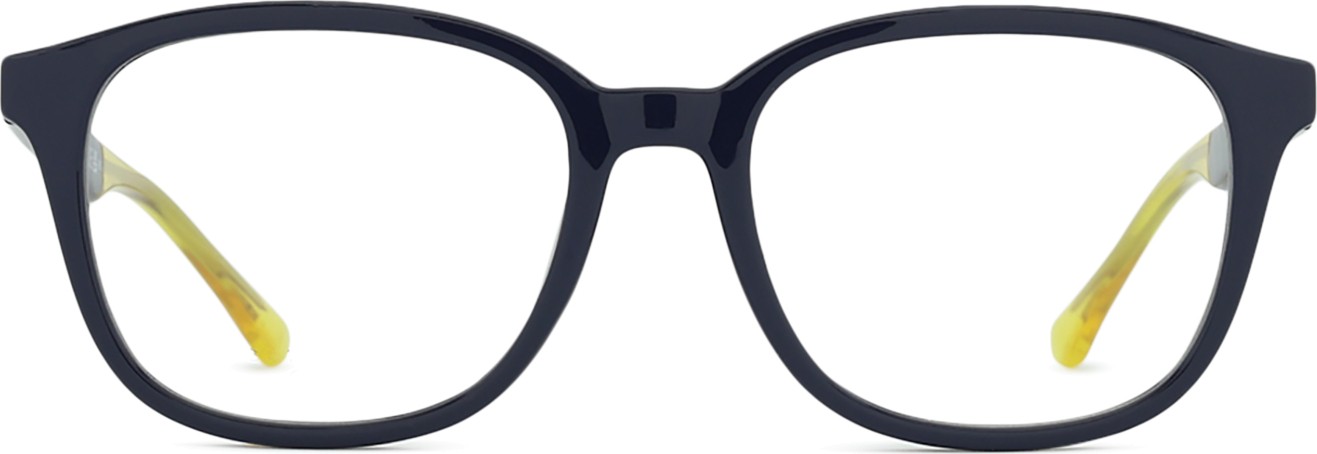 - A cor azul da armação combina perfeitamente com um tom de pele claro e um cabelo castanho claro, preto ou loiro claro.