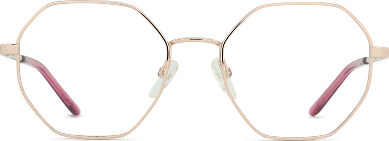 - A cor rosa da armação combina perfeitamente com um tom de pele claro e um cabelo castanho ou loiro claro.