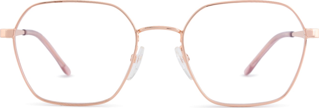 - A cor rosa da armação combina perfeitamente com um tom de pele claro e um cabelo castanho ou loiro claro.