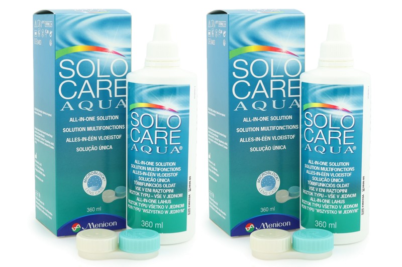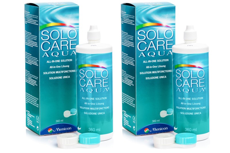 Solocare AQUA é um líquido multiusos da empresa Menicon concebido para limpar, desinfetar, enxaguar, conservar e hidratar as lentes de contacto. Os utilizadores valorizam, sobretudo, o seu moderno método de humidificação que ajuda as lentes a estarem suficientemente hidratadas durante todo o dia.