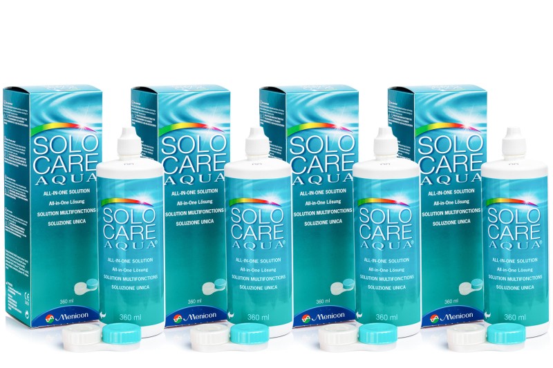 Solocare AQUA é um líquido multiusos da empresa Menicon concebido para limpar, desinfetar, enxaguar, conservar e hidratar as lentes de contacto. Os utilizadores valorizam, sobretudo, o seu moderno método de humidificação que ajuda as lentes a estarem suficientemente hidratadas durante todo o dia.