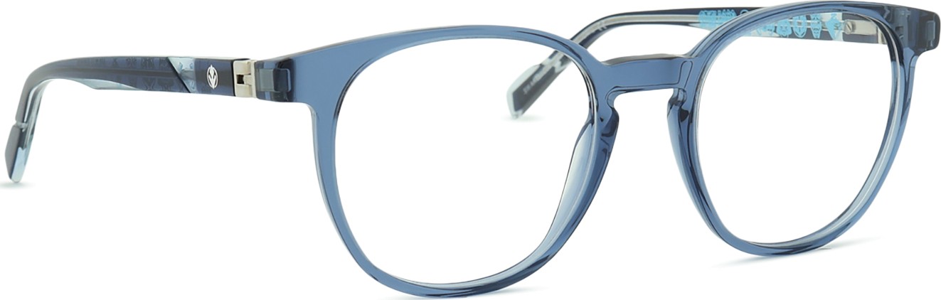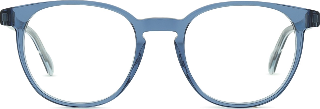 A cor azul da armação combina perfeitamente com um tom de pele claro e um cabelo castanho claro, preto ou loiro claro.