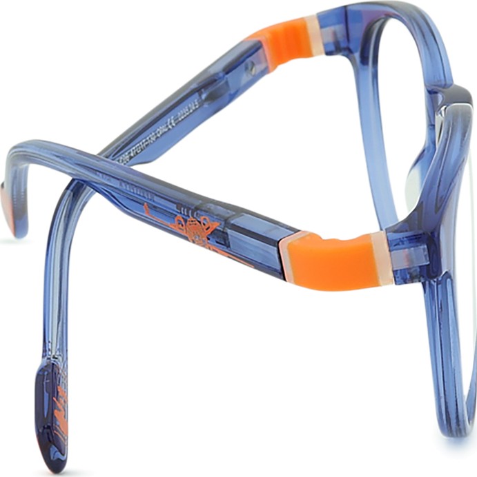 A cor azul da armação combina perfeitamente com um tom de pele claro e um cabelo castanho claro, preto ou loiro claro.