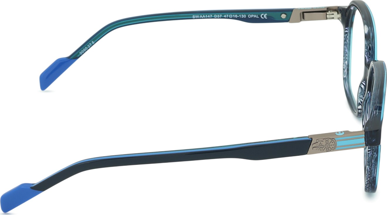 • A cor azul da armação combina perfeitamente com um tom de pele claro e um cabelo castanho claro, preto ou loiro claro.