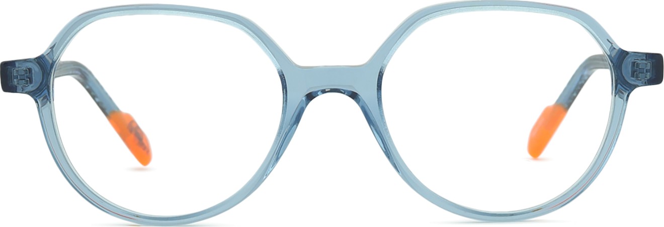 A cor azul da armação combina perfeitamente com um tom de pele claro e um cabelo castanho claro, preto ou loiro claro.