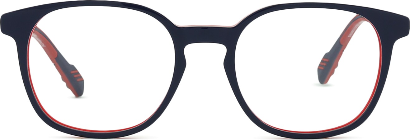 A cor azul da armação combina perfeitamente com um tom de pele claro e um cabelo castanho claro, preto ou loiro claro.