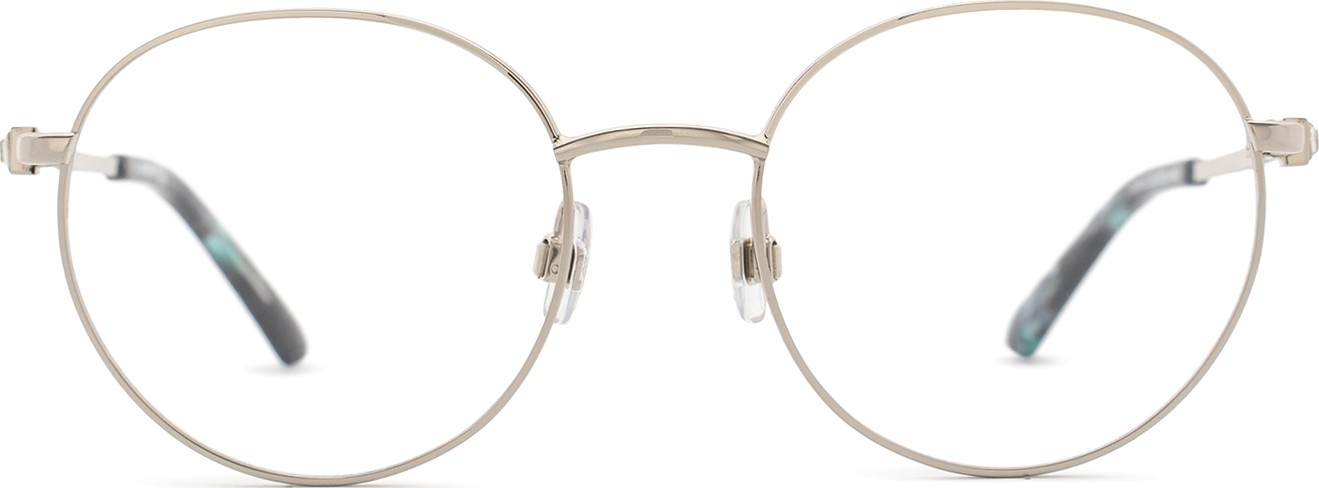 A cor prateada da armação combina perfeitamente com um tom de pele claro e um cabelo vermelho, cinzento, branco ou loiro escuro.