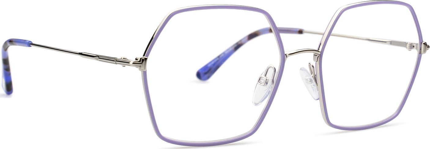 - A cor púrpura da armação combina perfeitamente com um tom de pele claro e um cabelo preto, cinzento, branco ou loiro claro.