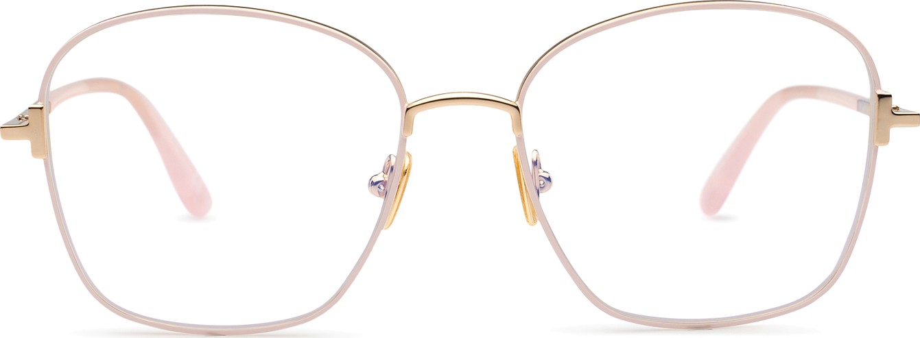 - A cor rosa da armação combina perfeitamente com um tom de pele claro e um cabelo castanho ou loiro claro.