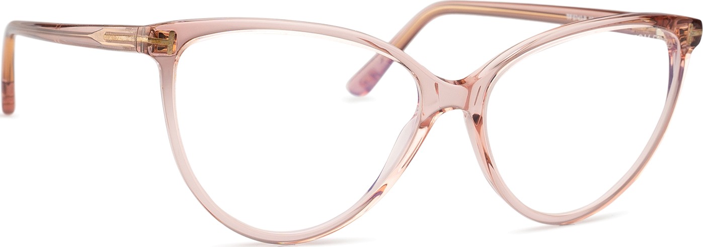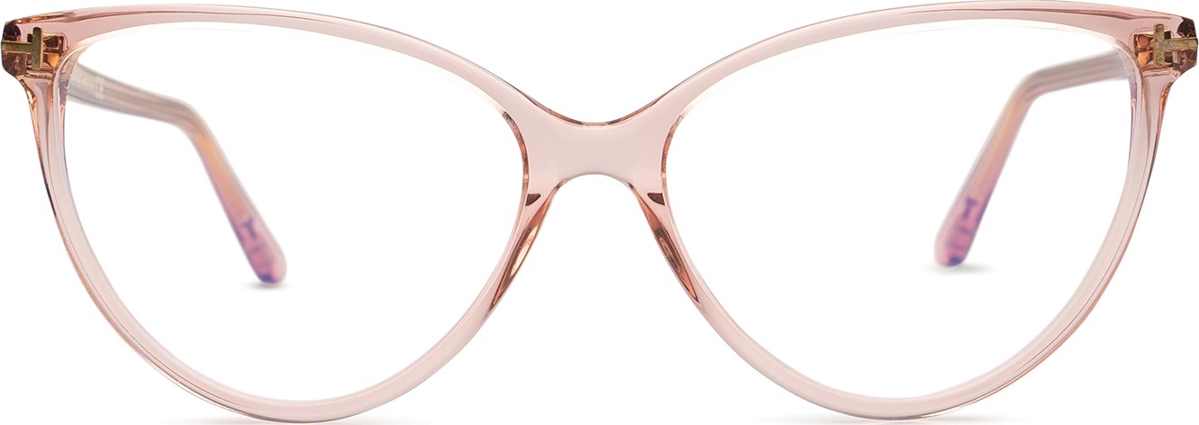 - A cor rosa da armação combina perfeitamente com um tom de pele claro e um cabelo castanho ou loiro claro.