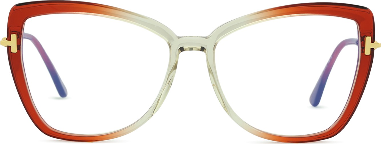 A cor laranja da armação combina perfeitamente com um tom de pele escuro e um cabelo preto, castanho escuro e loiro escuro.