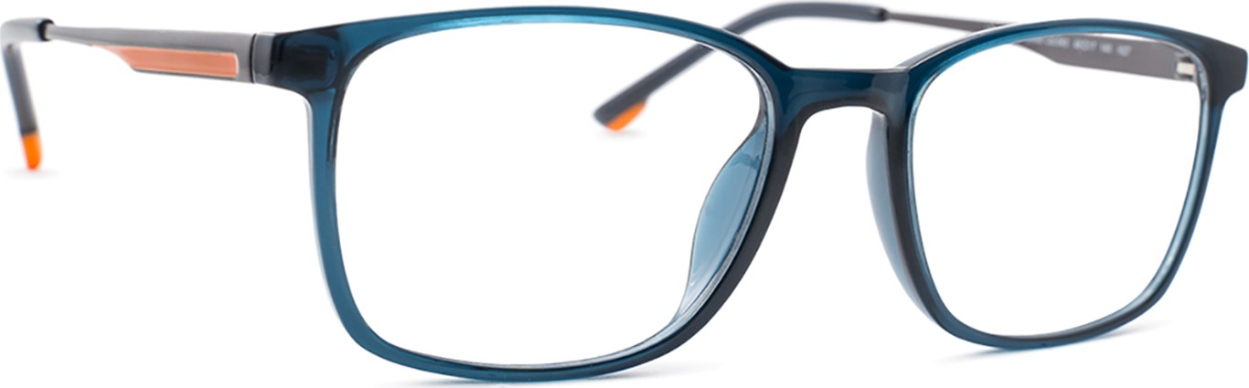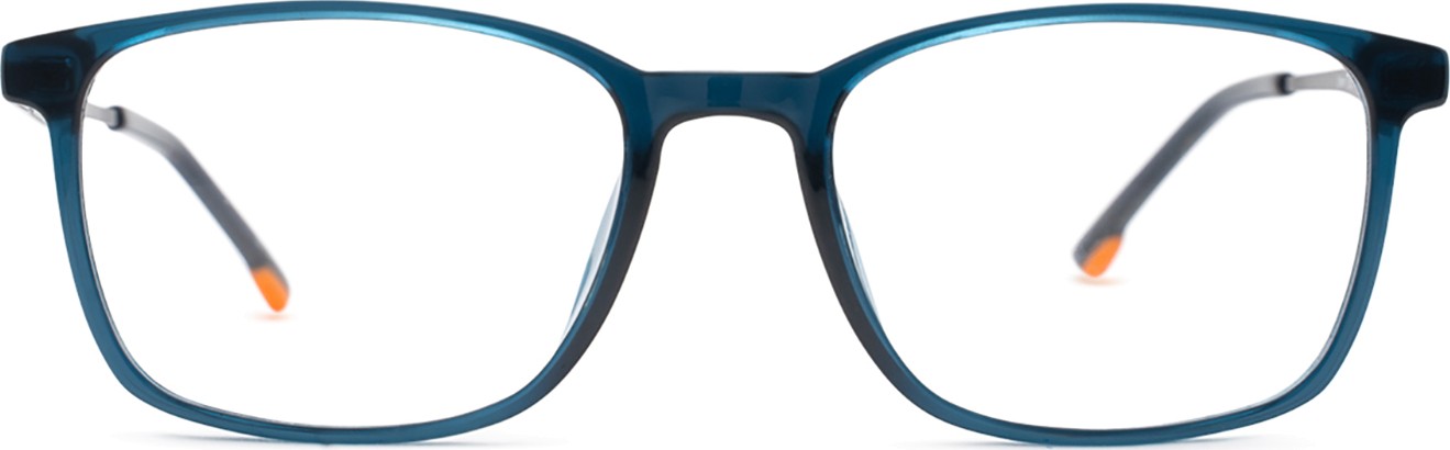 - A cor azul da armação combina perfeitamente com um tom de pele claro e um cabelo castanho claro, preto ou loiro claro.