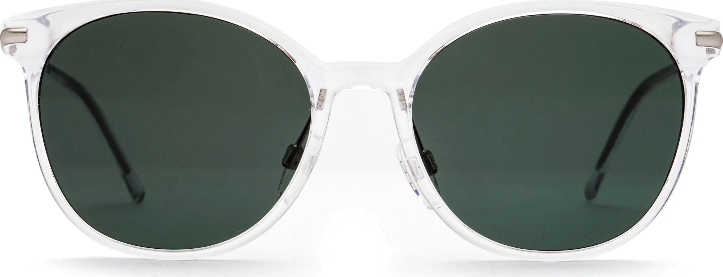- A armação transparente combina perfeitamente com os tons de pele claros e escuros e com todas as cores de cabelo.