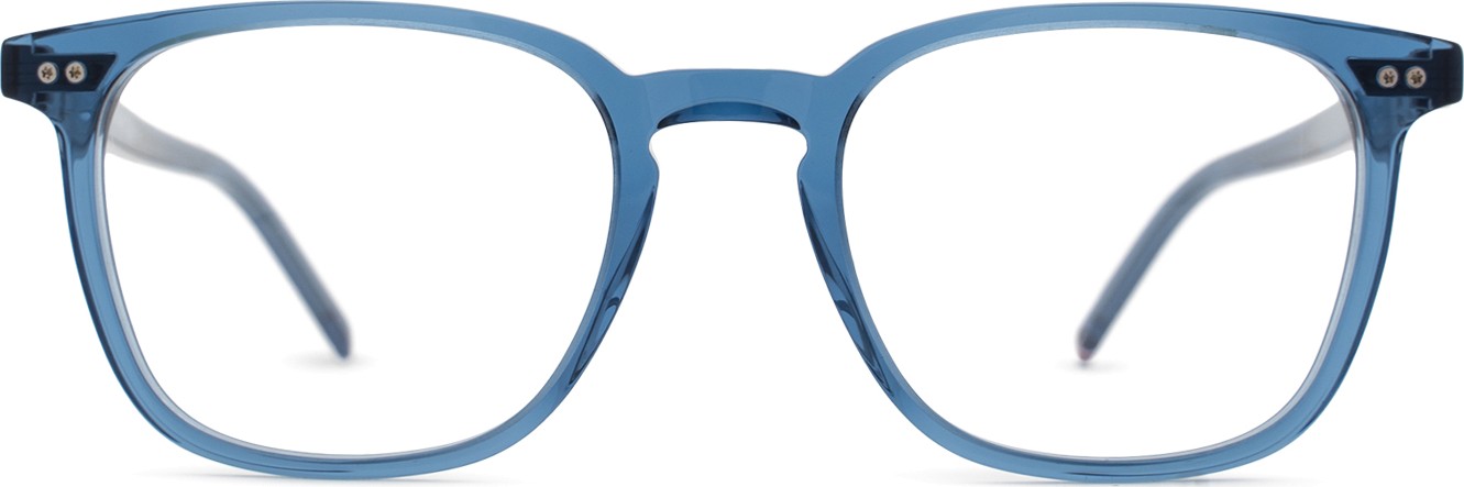 - A cor azul da armação combina perfeitamente com um tom de pele claro e um cabelo castanho claro, preto ou loiro claro.