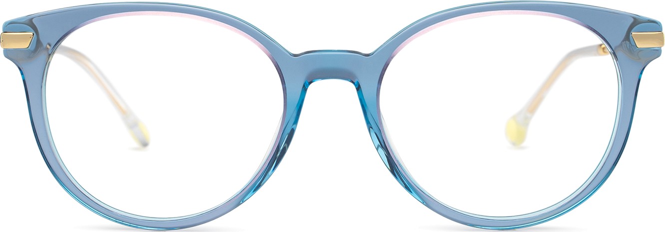 - A cor azul da armação combina perfeitamente com um tom de pele claro e um cabelo castanho claro, preto ou loiro claro.