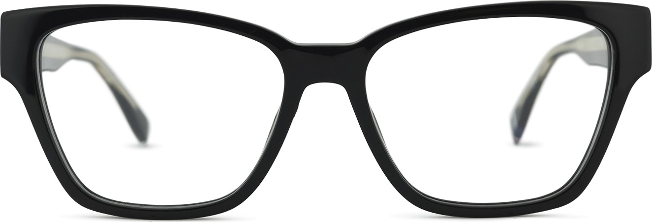 - A cor preta da armação combina perfeitamente com um tom de pele claro e um cabelo loiro claro, castanho claro ou preto.