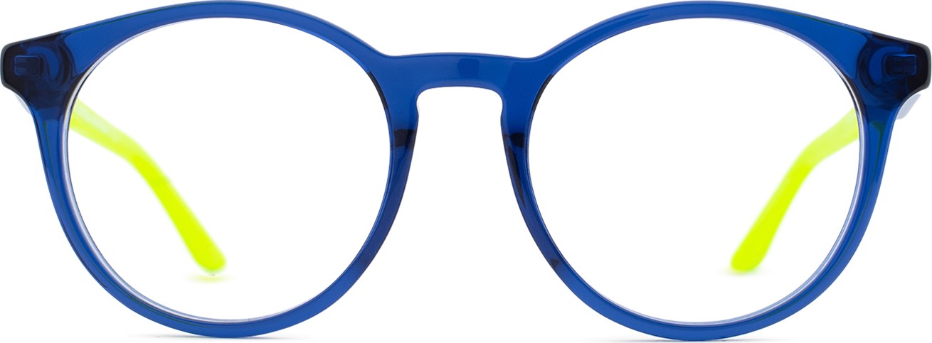 - A cor azul da armação combina perfeitamente com um tom de pele claro e um cabelo castanho claro, preto ou loiro claro.