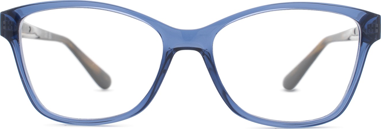 - A cor azul da armação combina perfeitamente com um tom de pele claro e um cabelo castanho claro, preto ou loiro claro.