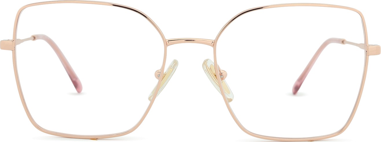 - A cor rosa da armação combina perfeitamente com um tom de pele claro e um cabelo castanho ou loiro claro.