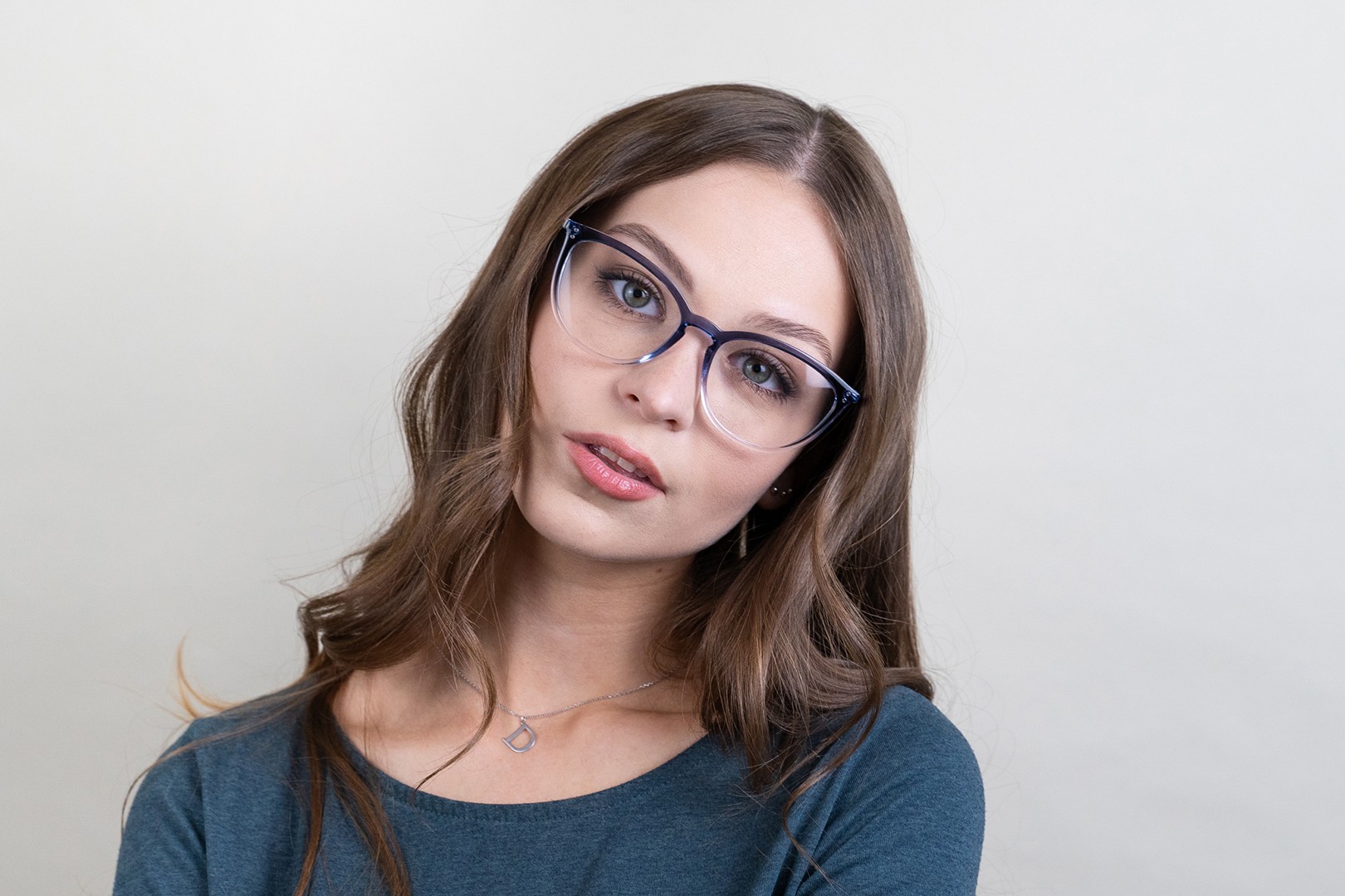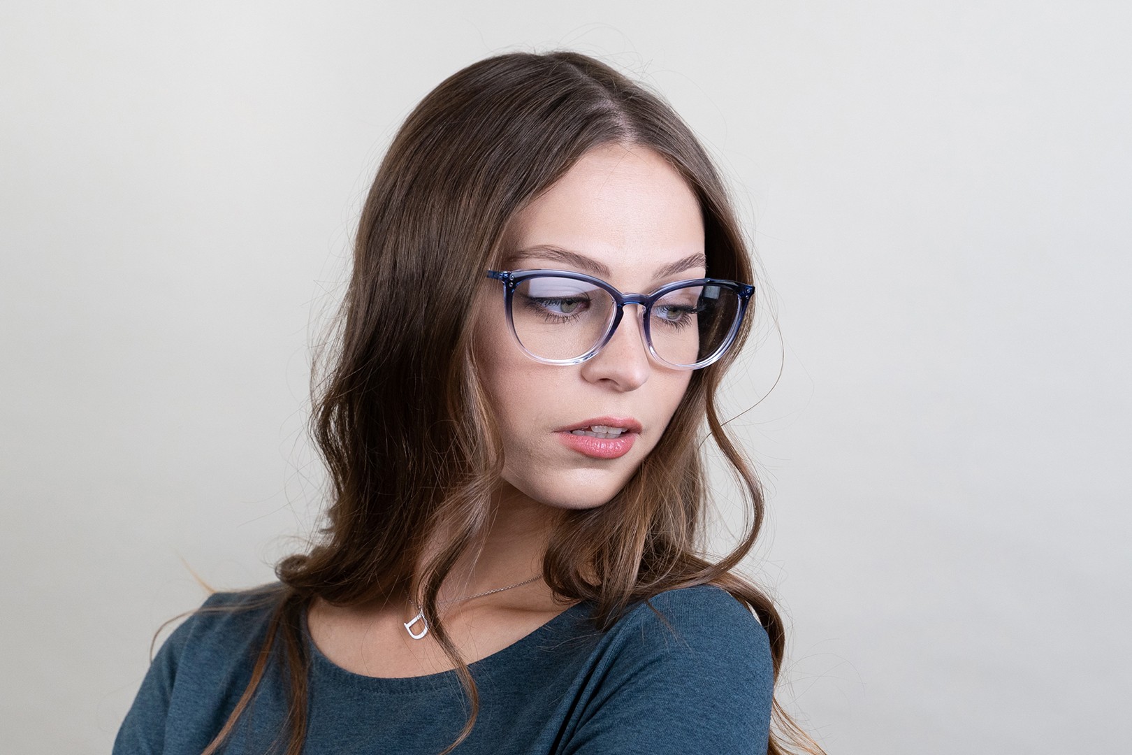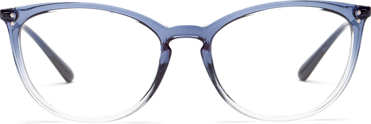 - A cor azul da armação combina perfeitamente com um tom de pele claro e um cabelo castanho claro, preto ou loiro claro.