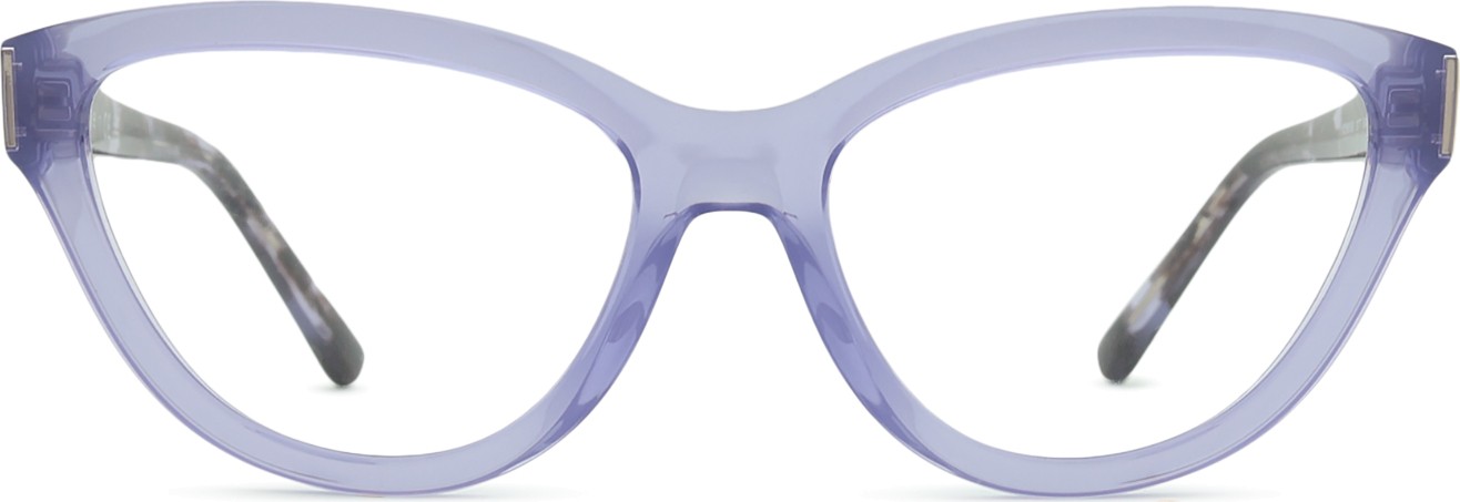 A cor púrpura da armação combina perfeitamente com um tom de pele claro e um cabelo preto, cinzento, branco ou loiro claro.
