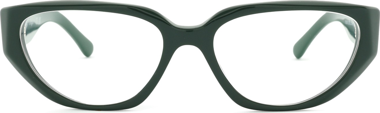 - A cor verde da armação combina perfeitamente com um tom de pele claro e um cabelo castanho escuro, preto ou ruivo.