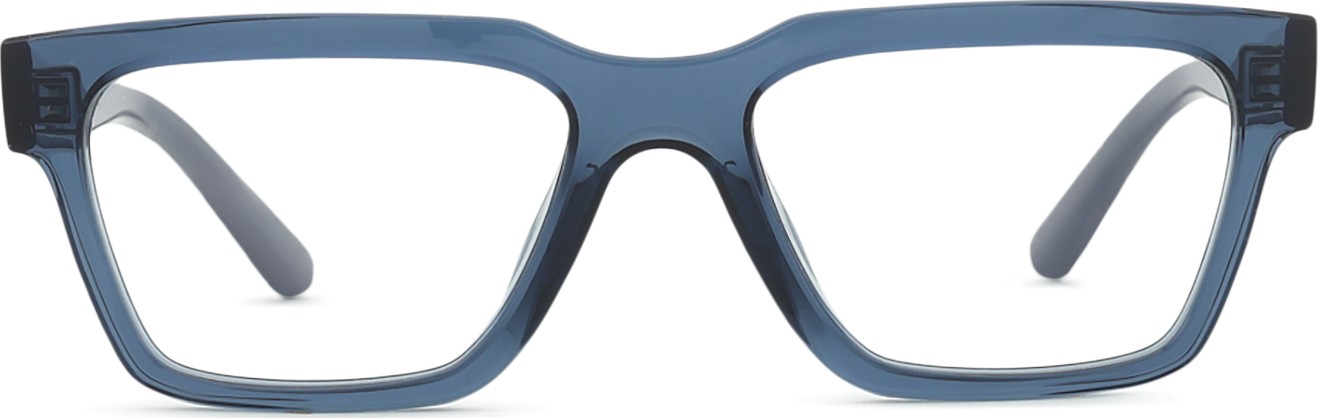 A cor azul da armação combina perfeitamente com um tom de pele claro e um cabelo castanho claro, preto ou loiro claro.